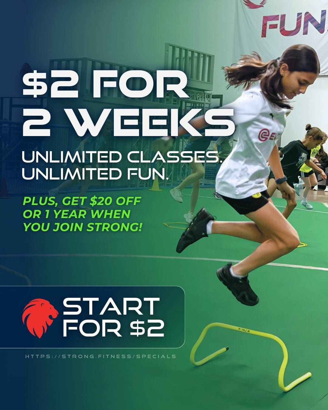 For less than the cost of a pack of gum, you can give your child two weeks of strength, movement, and joy. Our youth classes are packed with fun, designed to build skills, and led by coaches who bring out the best in kids.