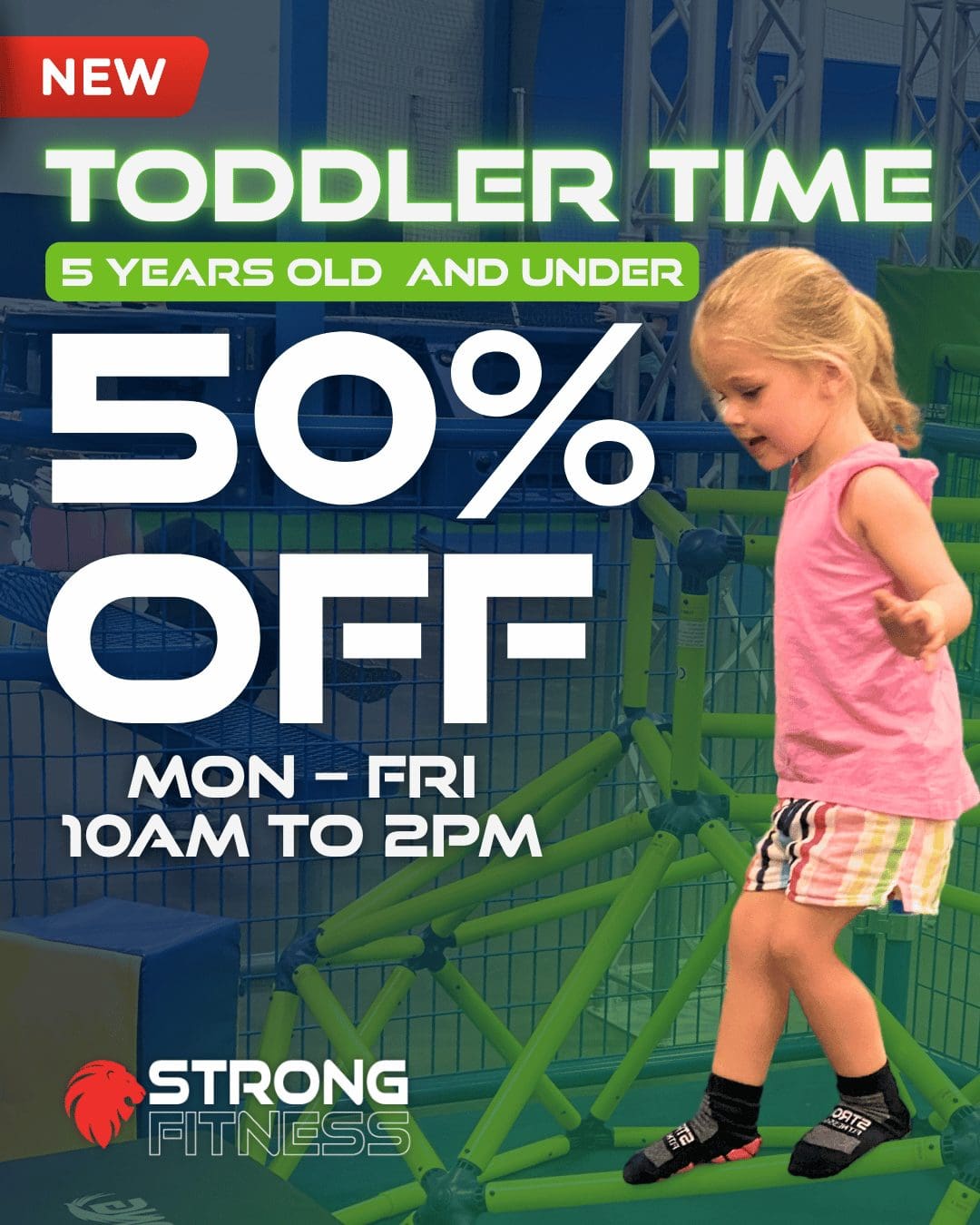 We’ve upgraded the Strong floor with new ground and hanging obstacles for every age!